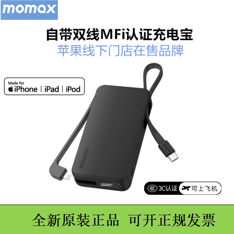 【3C认证可上飞机】MOMAX摩米士2026新款自带线充电宝快充10000毫安大容量快充适用苹果17手机移动电源