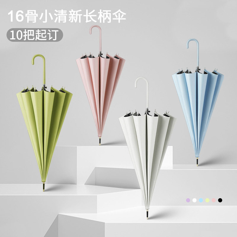 特价16骨素色彩虹伞长柄直杆伞防风伞晴雨伞商务伞定制logo广告伞