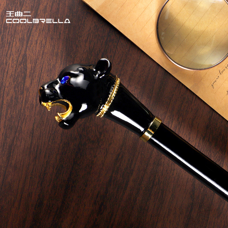 雨伞 长柄伞男生自动直杆创意黑豹定制大号复古绅士高级感晴雨伞