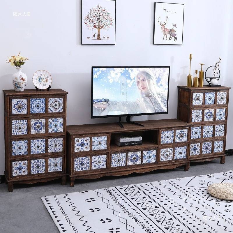 美式实木复古整装电视柜彩绘客厅唯美靠墙电视桌长1.5m电视柜子
