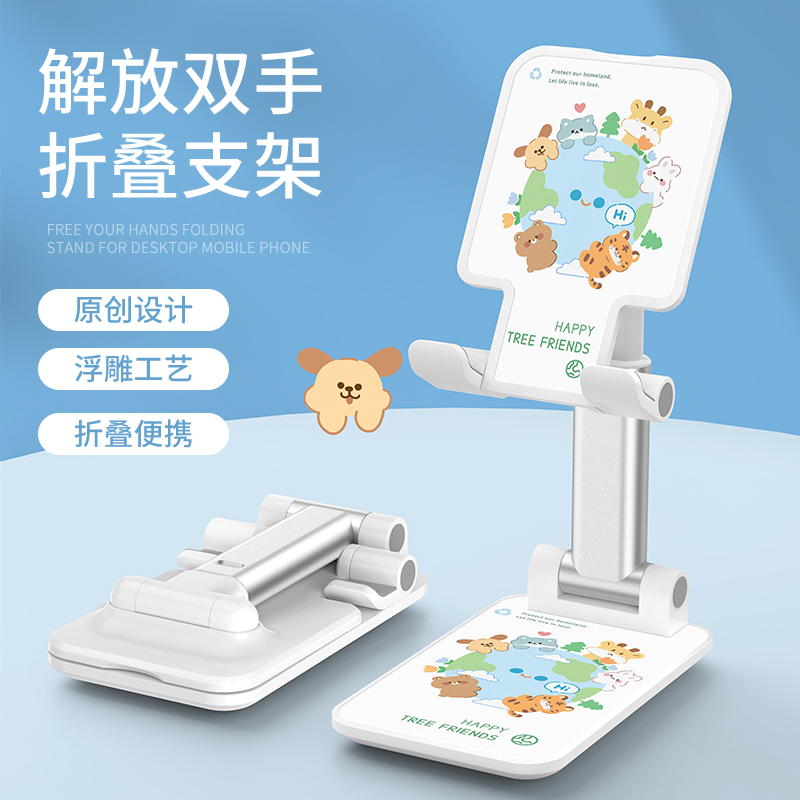 手机支架适用ipad平板通用卡通小熊新款懒人支架折叠多功能直播可调节升降办公伸缩架便携金属防摔看电视桌面