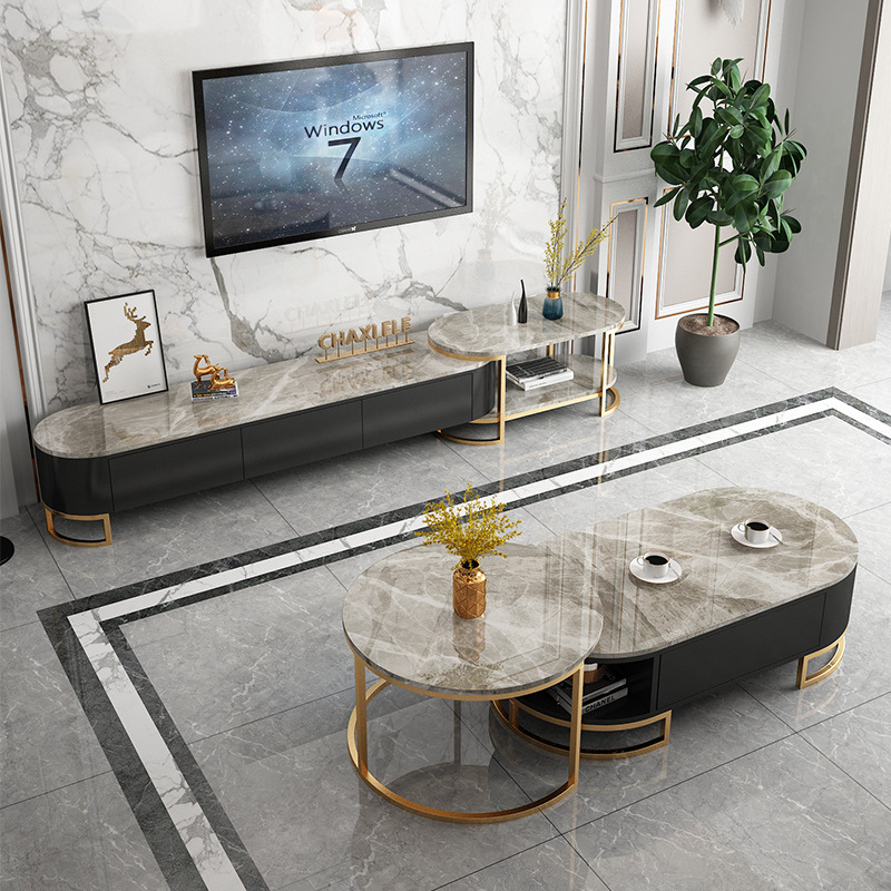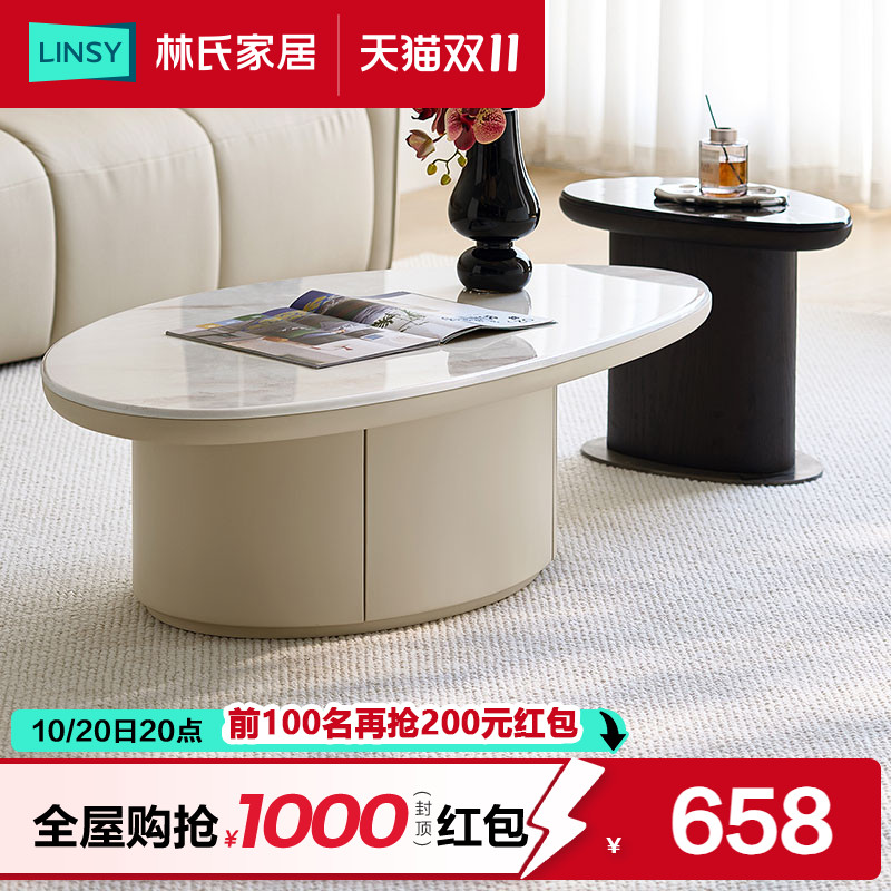 岩板茶几电视柜组合轻奢现代椭圆形茶几桌客厅家用简约小户型桌子