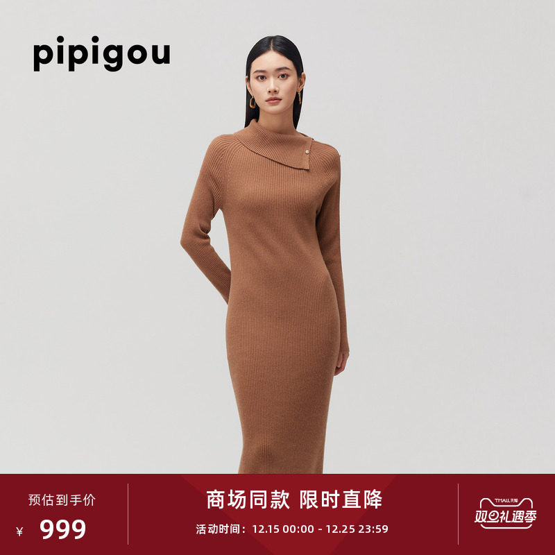 配大衣毛衣裙女秋冬季新款半高领羊毛针织打底裙中长款羊绒连衣裙