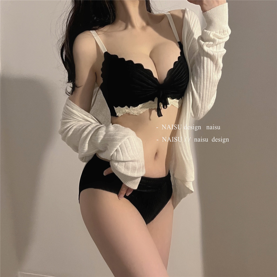 新款日系纯欲内衣女小胸聚拢秋冬新款无钢圈少女蕾丝文胸套装胸罩