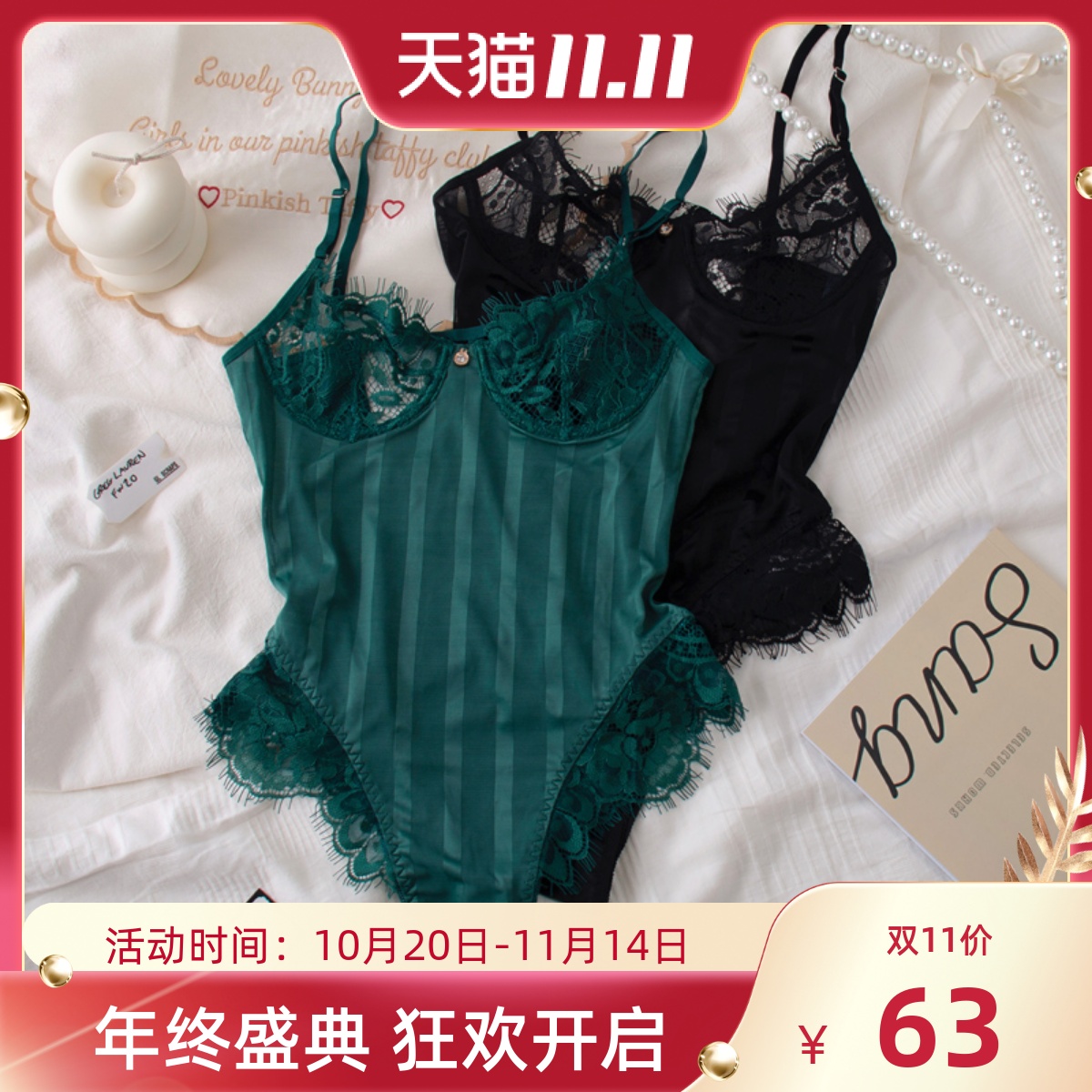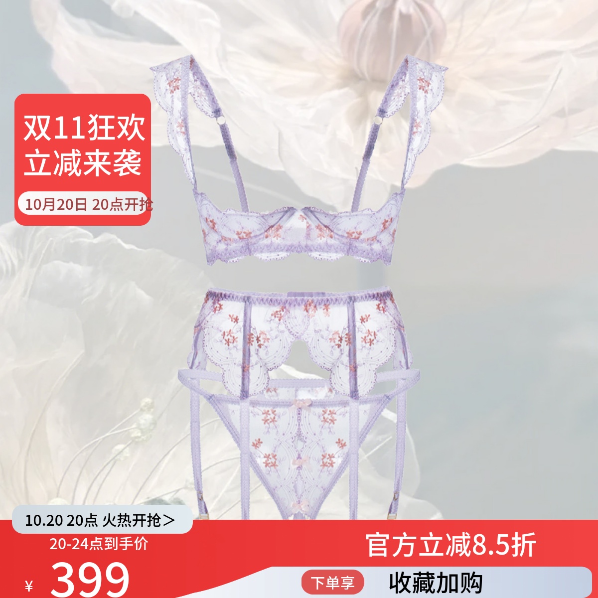 濡溯 绿色花园法式浪漫有钢圈蕾丝性感透明三角杯套装胸罩内衣bra