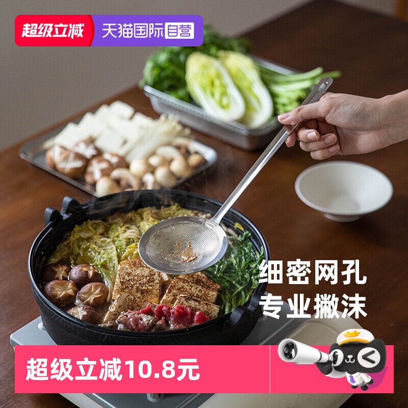 【自营】霜山不锈钢漏勺滤油勺家用焯水撇沫勺过滤网长柄火锅捞勺