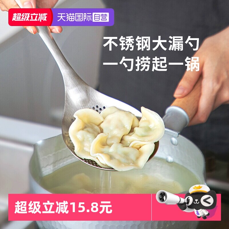 【自营】霜山不锈钢大漏勺家用焯水笊篱一体成型滤油勺火锅捞勺子