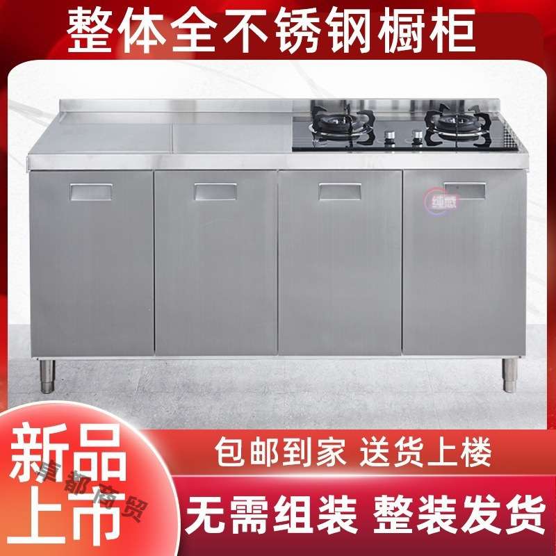 整体不锈钢厨房橱柜灶台柜一体家用储物碗柜租房用厨房柜子经济型