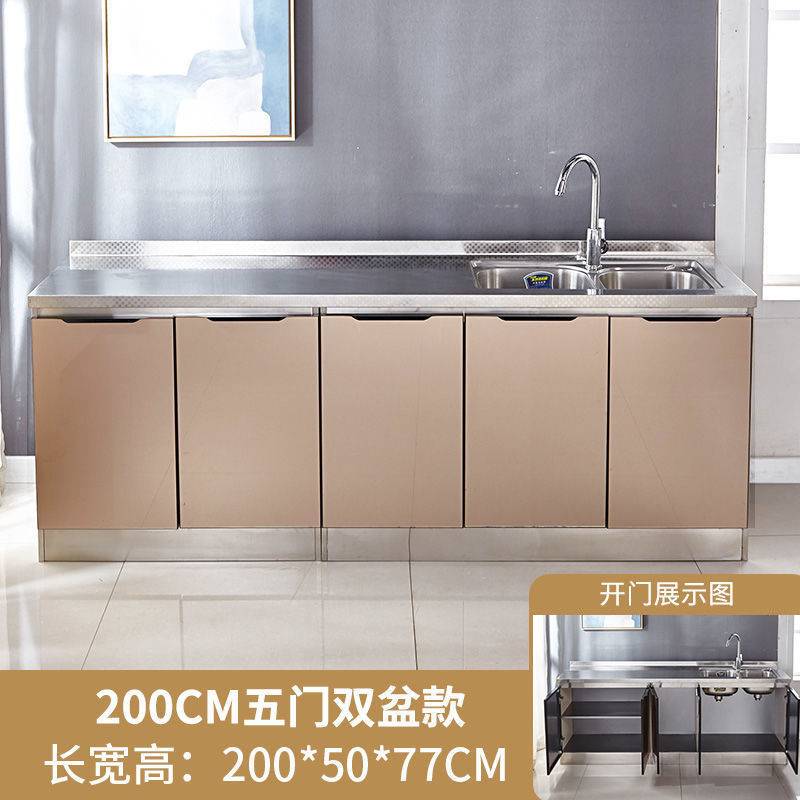 简易橱柜不锈钢厨柜家用厨房碗柜出租房灶台柜整体储物柜子水槽柜
