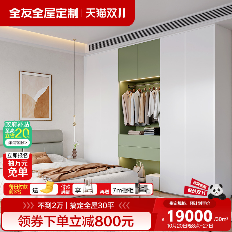 全友全屋定制整体衣柜家用卧室衣帽间鞋柜客厅背景墙橱柜柜子定做