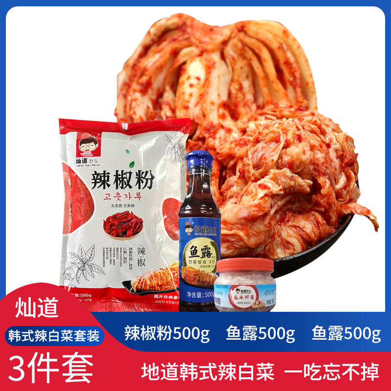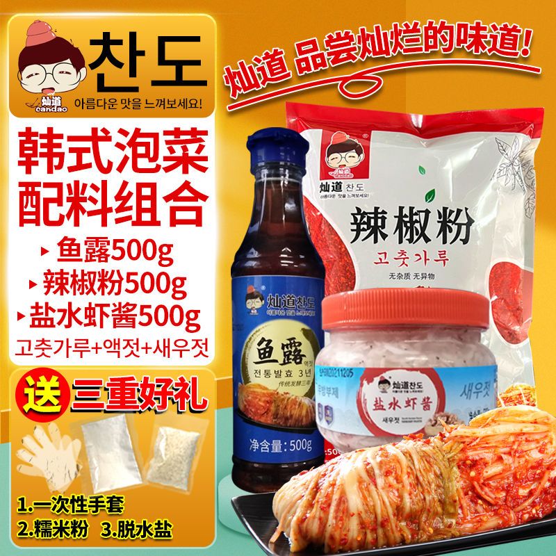 腌制泡菜灿道韩国鱼露辣椒粉鲜虾酱DIY辣白菜调料套餐1500+送赠品