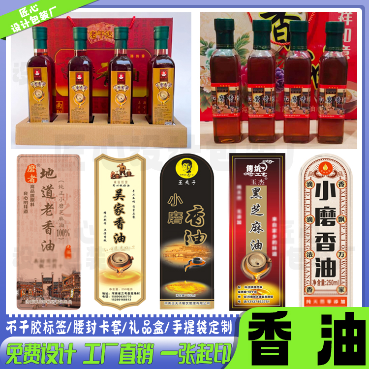 DIY设计香油瓶logo贴纸芝麻酱标签花生酱商标辣椒酱不干胶贴定制
