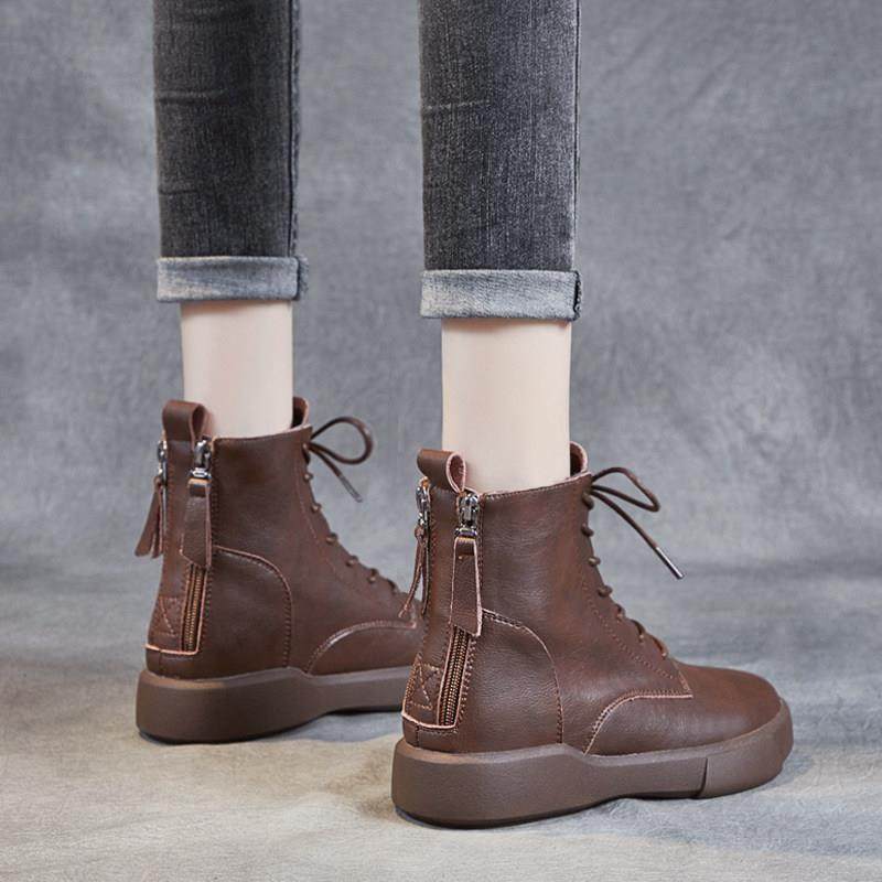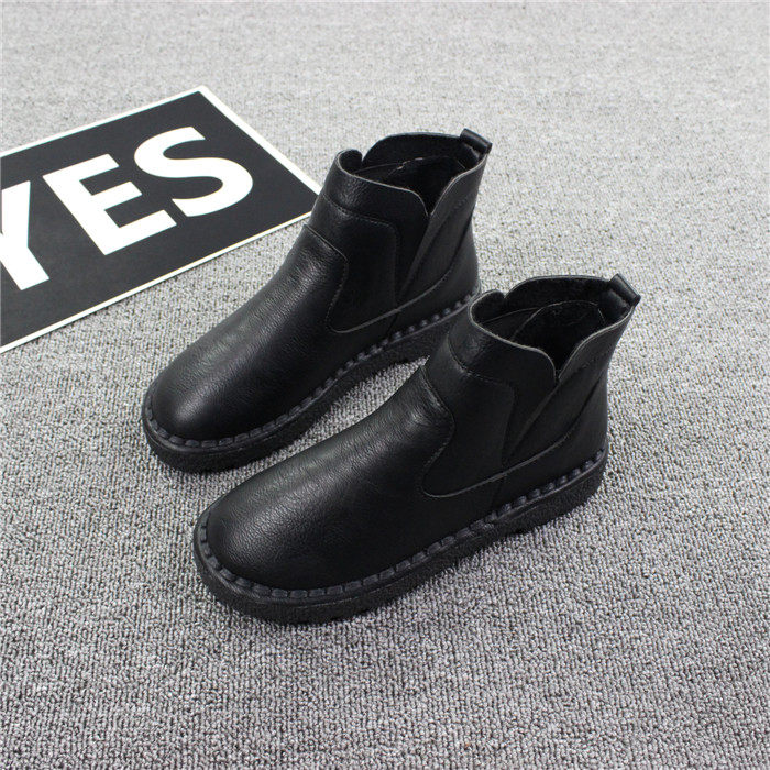 软底短靴女复古圆头后拉链英伦马丁靴韩版平底短筒加绒防滑靴子女