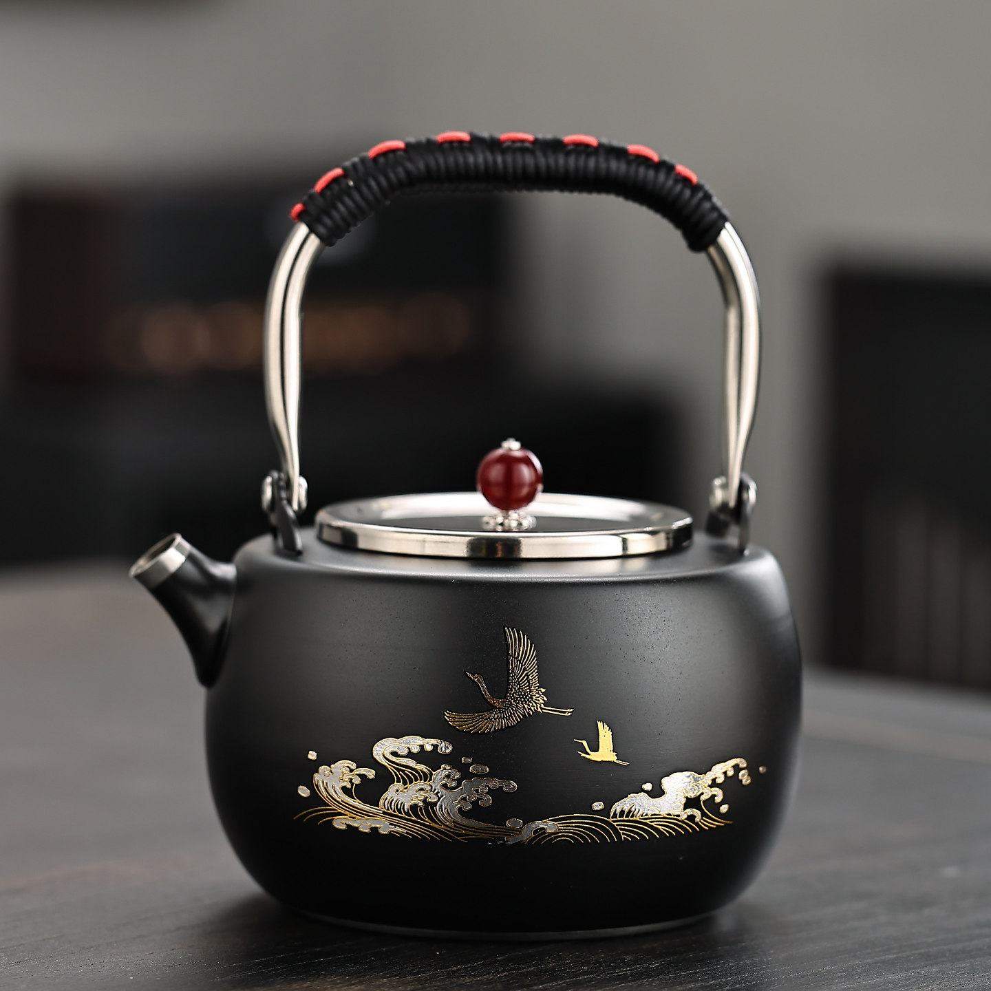 日本铁壶煮茶壶电磁炉烧水壶牡丹铁壶防烫茶具套装家用简约煮茶器
