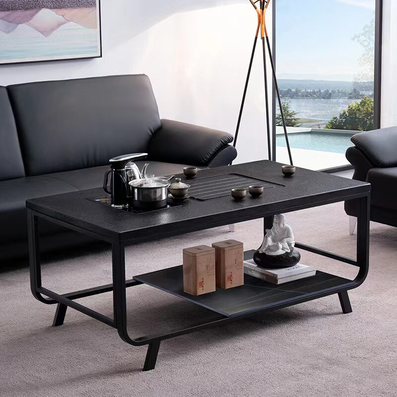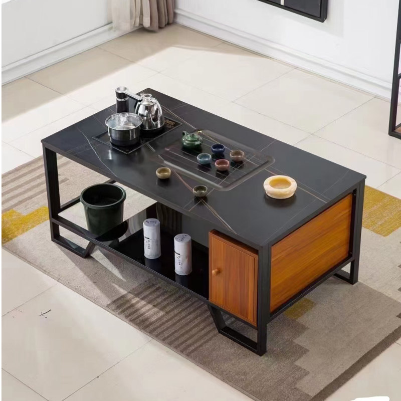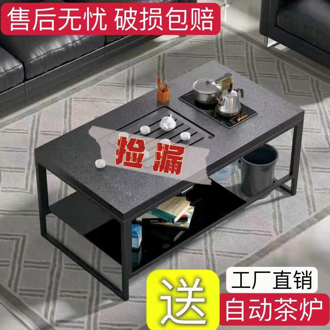 岩板火烧石功夫茶几多功能办公室带电磁炉一体组合套装茶具铁艺架