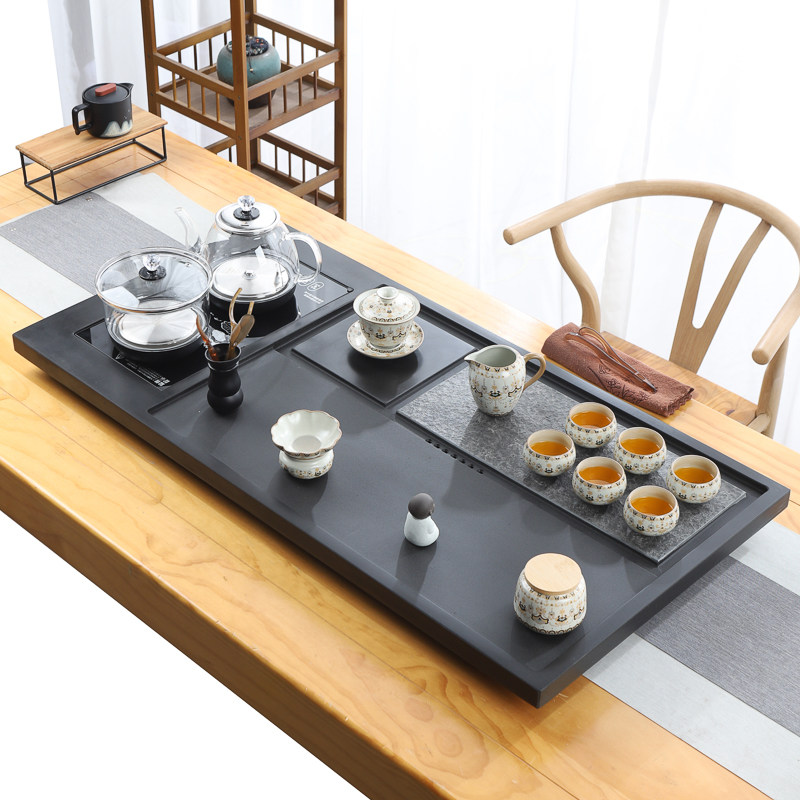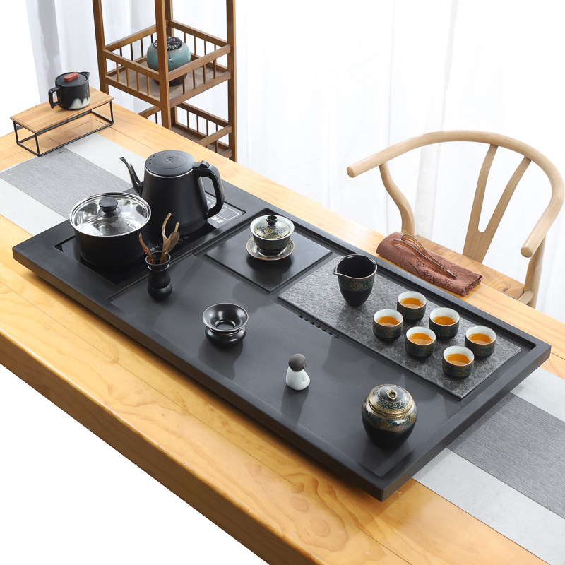 天然乌金石茶盘茶具套装全自动上水茶台烧水壶一体电磁炉家用简约