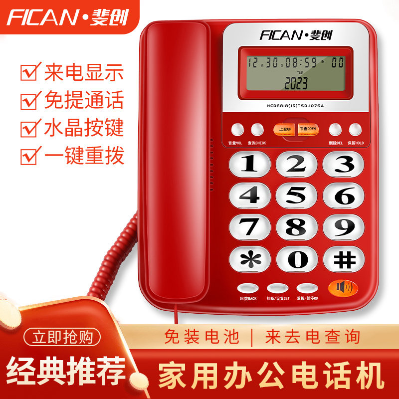 斐创有线电话座机办公室固定坐式老人固话家用电话机酒店宾馆新款