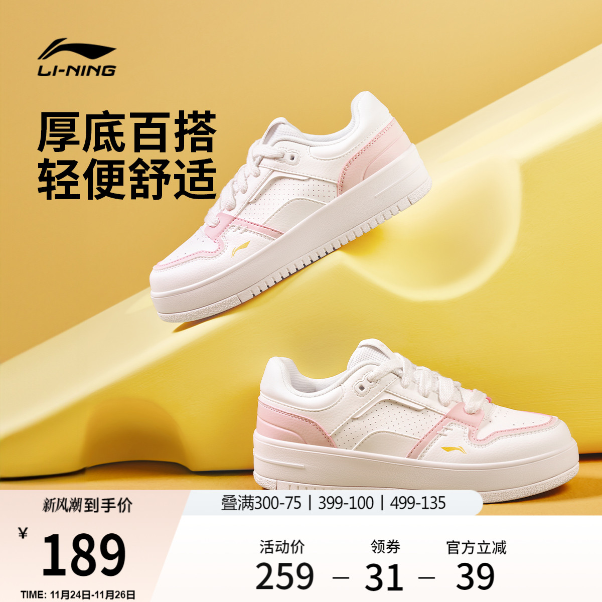 李宁奶酪丨板鞋女秋冬小白鞋时尚百搭厚底增高经典休闲鞋运动鞋女