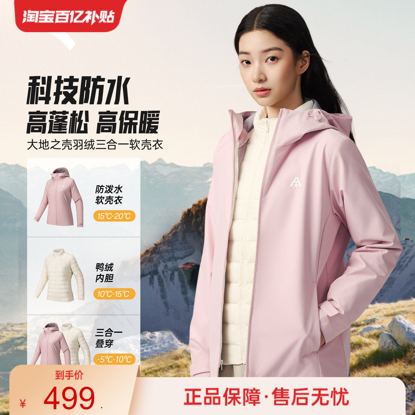 安踏羽绒三合一软壳衣丨大地之壳内胆羽绒服外套女士防泼水两件套