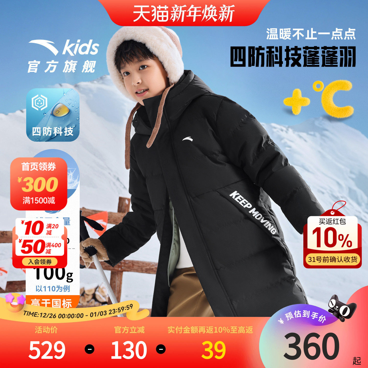 安踏儿童男女童长羽绒服2025冬上新舒适保暖中大童四防热返羽绒服