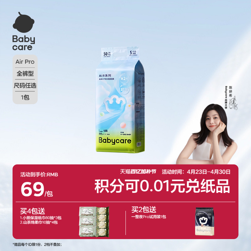 babycare纸尿裤Airpro试用装春夏季超薄款透气尿不湿S-XL码4片