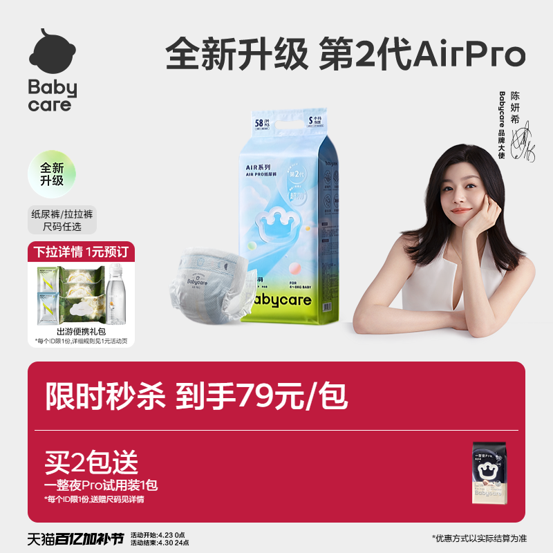 【新升级】babycare纸尿裤airpro新生儿日用夏日超薄透气3包任选