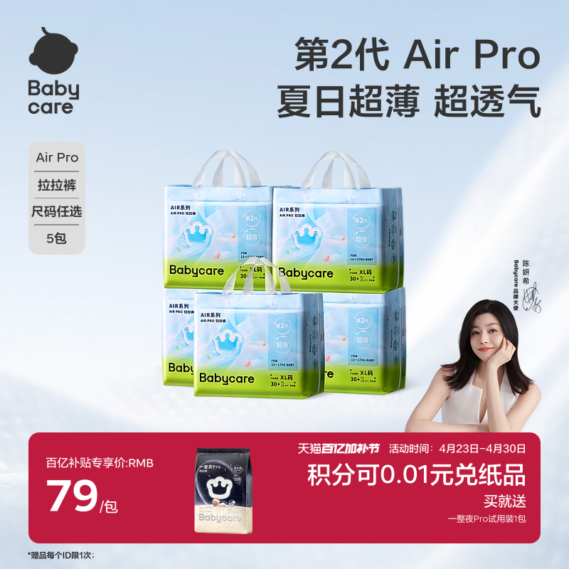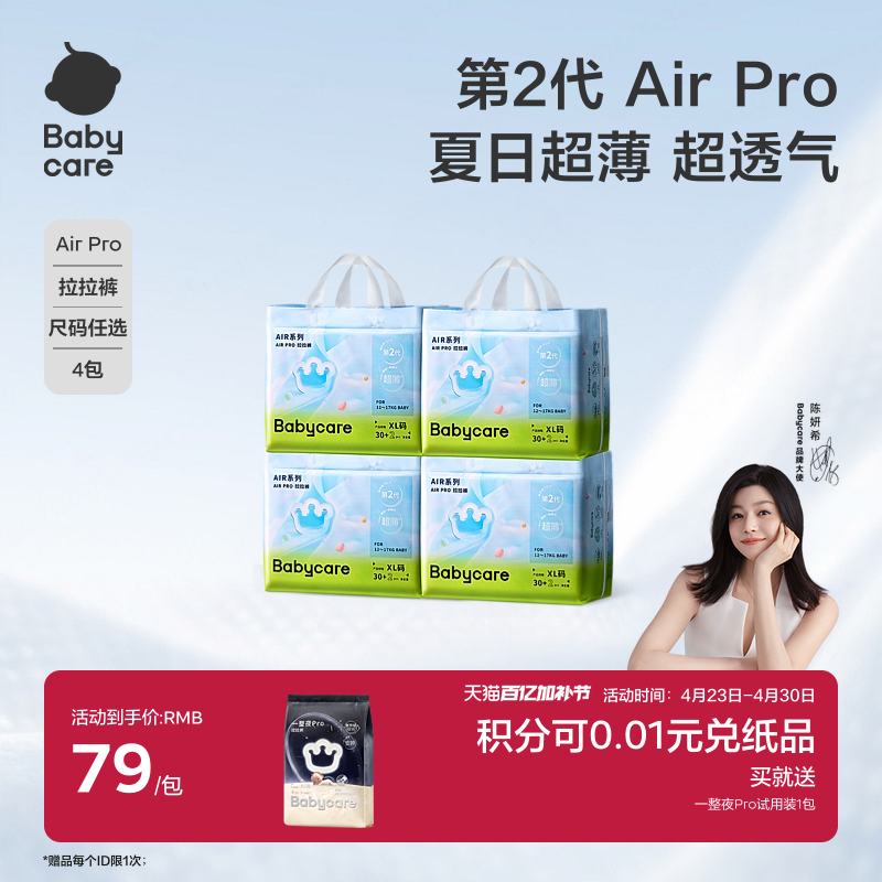 babycare拉拉裤Airpro试用装超薄日用透气春夏季尿不湿L-4XL*4片