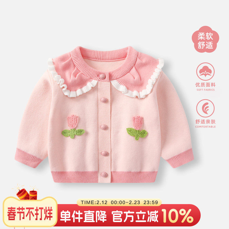 女宝宝外套春装2026新款婴儿针织衫开衫毛衣女童洋气上衣儿童衣服