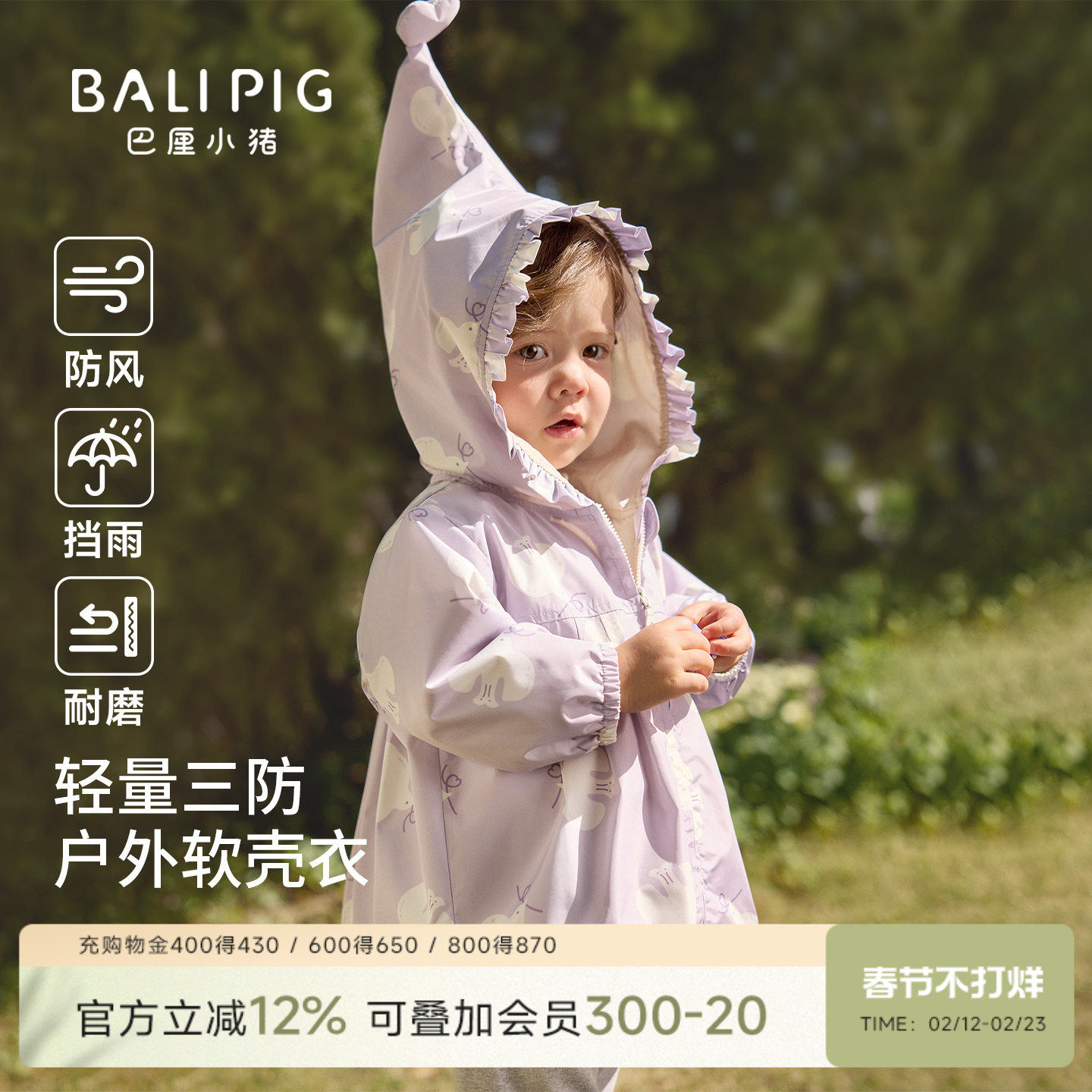 女宝宝外套春秋季户外萌冲山野锋衣女童连帽三防风衣春装儿童上衣