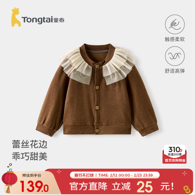 童泰女宝宝外套春秋季婴儿衣服儿童外出上衣女童可爱提花开衫童装