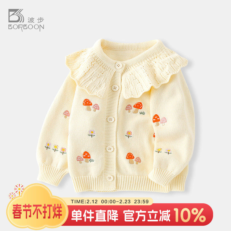 波步女宝宝外套春装婴儿毛衣针织衫女童洋气开衫儿童春秋外穿上衣