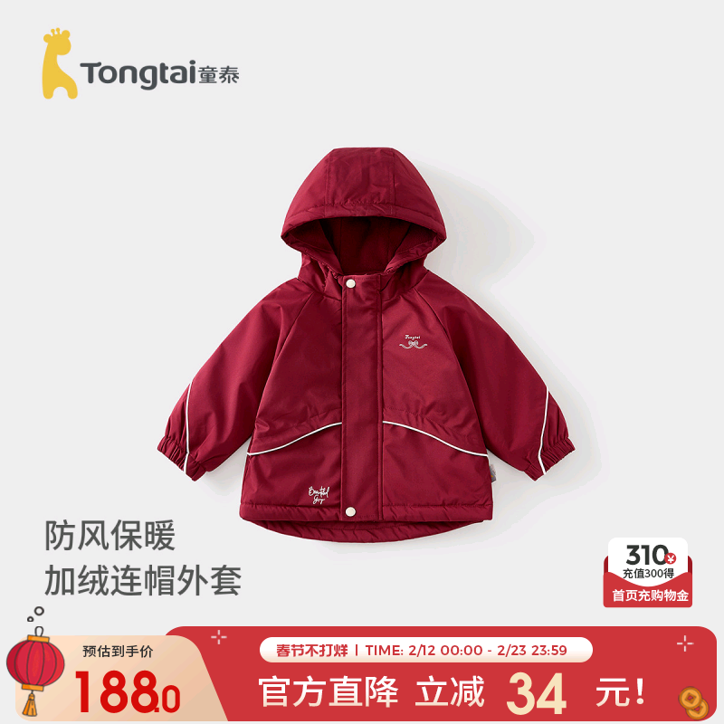 童泰女宝宝外套春秋季儿童衣服女童休闲外出加厚连帽上衣百搭童装