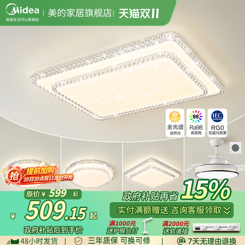 全国补贴15% 美的照明吸顶灯全屋套餐组合灯具简约现代仿水晶轻奢