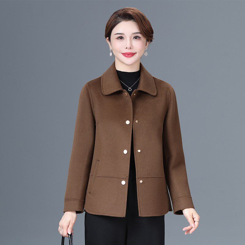 双面羊毛大衣女短款小个子毛呢外套中年女妈妈装时尚保暖翻领上衣