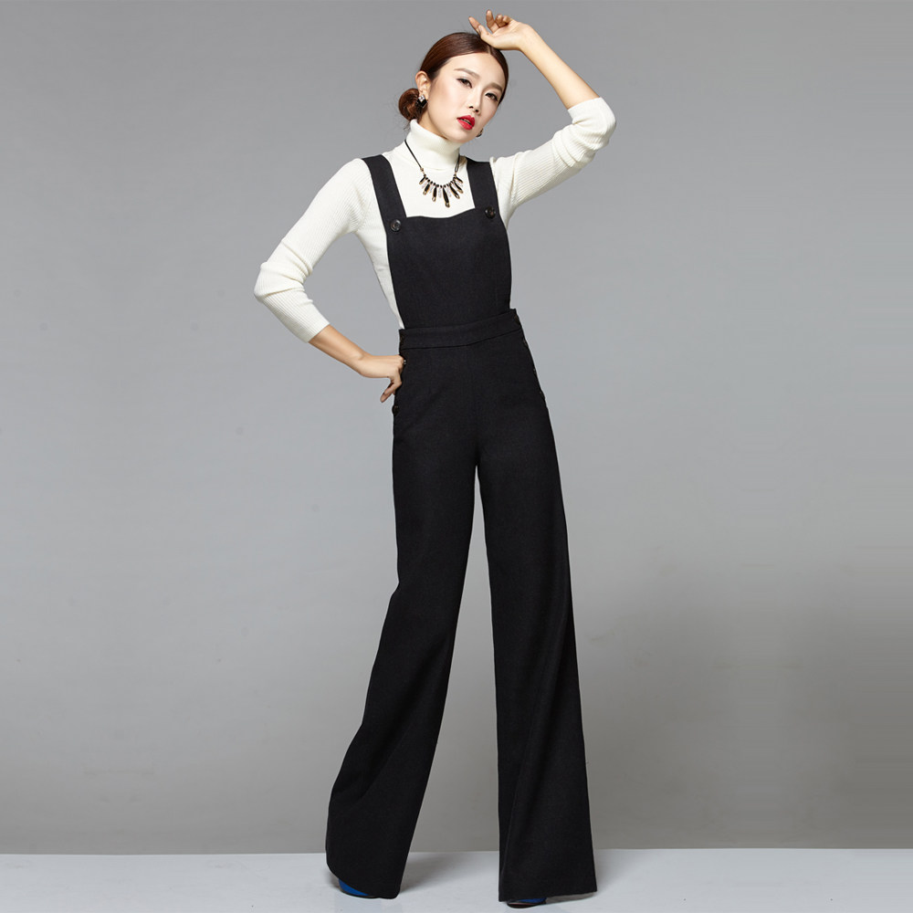 秋冬季新款女装 时尚毛呢料背带裤 加厚优雅气质大脚宽腿裤长裤