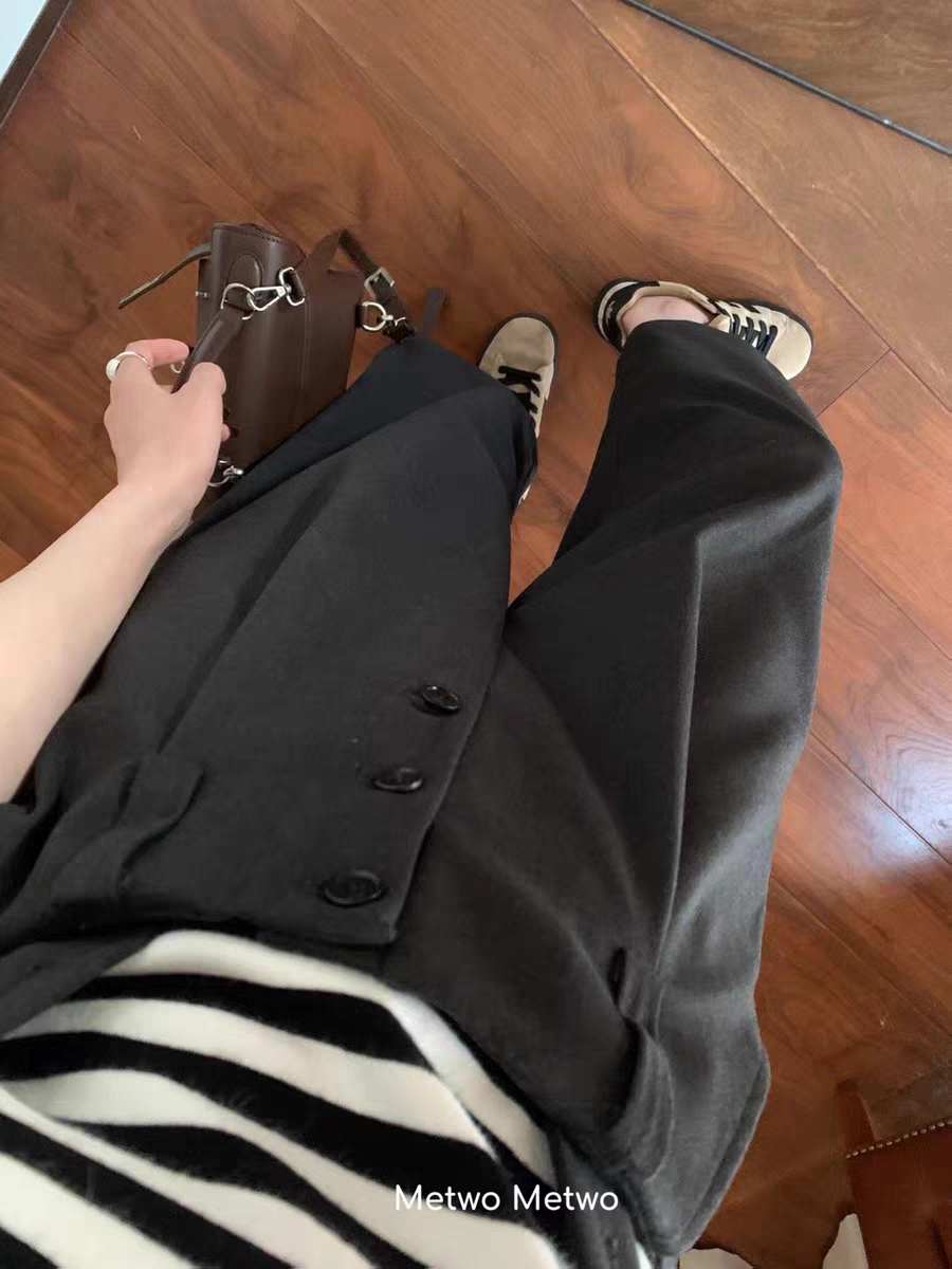 - 阔腿裤女 毛呢加厚裤
