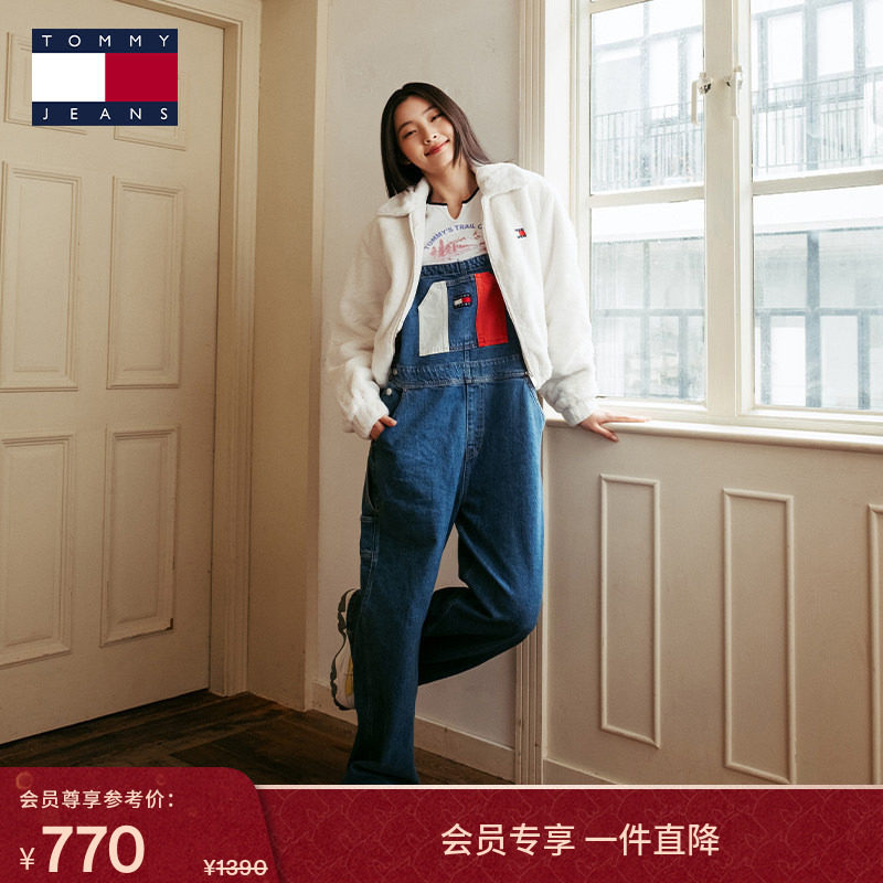 【宽松阔腿】Tommy秋冬女美式复古潮流拼色口袋工装风牛仔背带裤