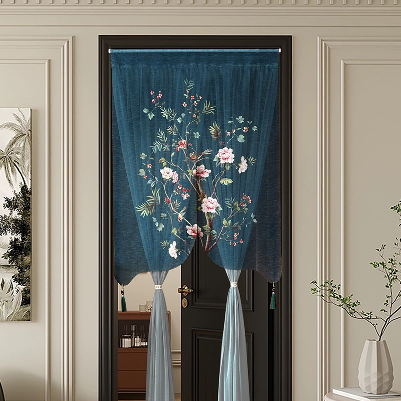 中式门帘厨房隔断帘半截式免打孔高档卫生间家用新款挂帘遮挡帘子