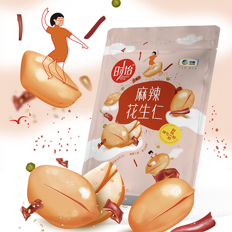时怡麻辣花生仁108g中粮出品花生米下酒菜酒鬼零食坚果不带壳即食