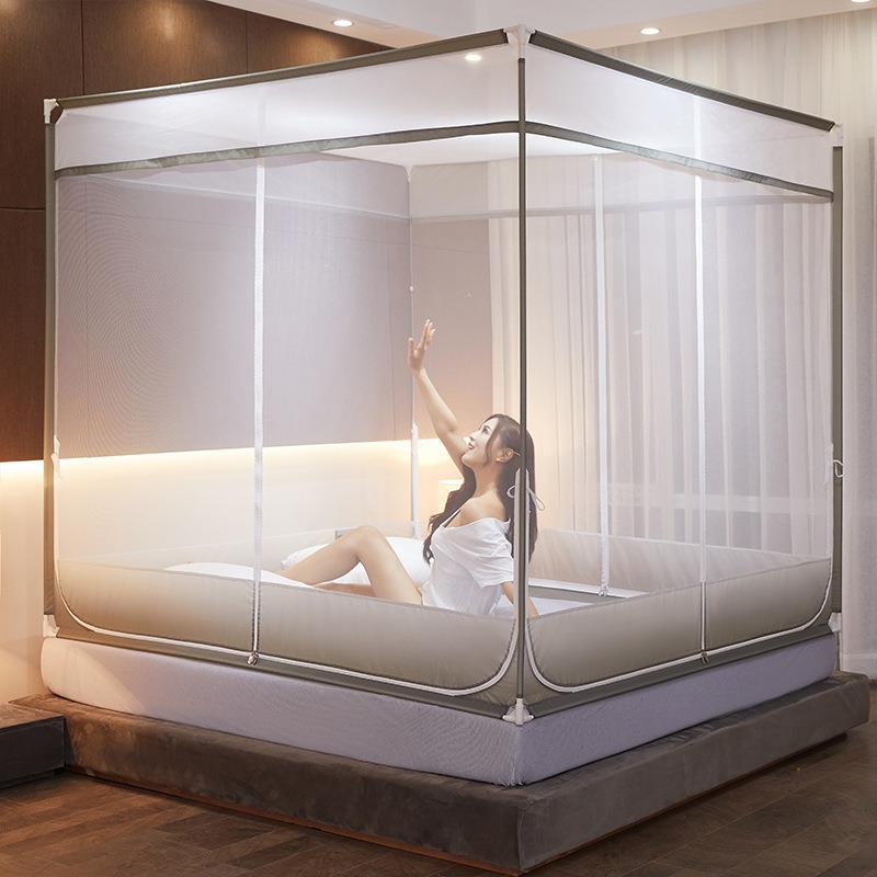 蚊帐三开门拉链方j顶1.5米1.8m2全封闭加密加厚家用防摔坐床式纹