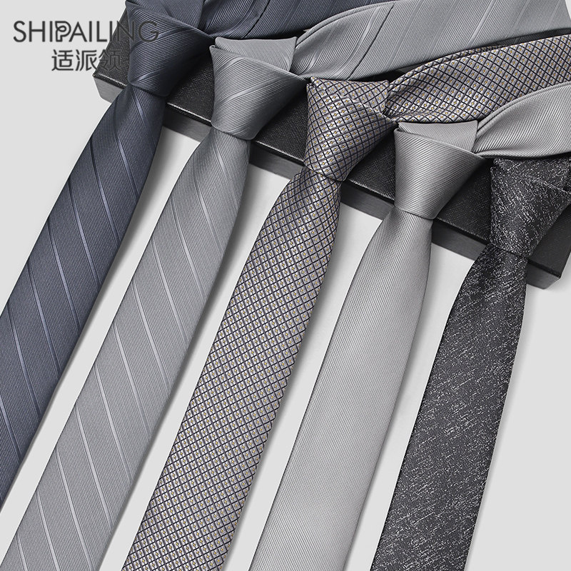 灰色领带男士正装商务窄版黑色手打韩版百搭学生面试深蓝领带6cm