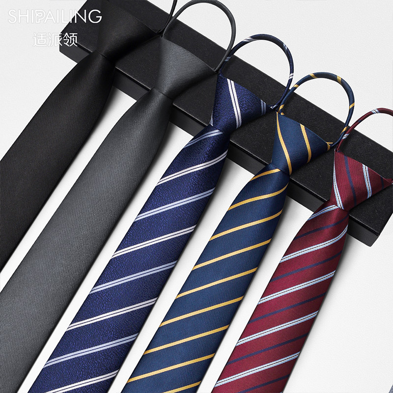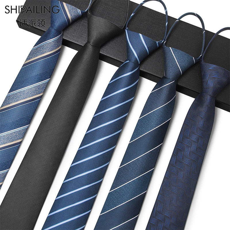 免打结黑色休闲韩版商务领带拉链易拉得男士百搭深蓝纯色职业正装