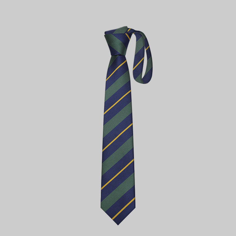 领带衬衫男潮学院风时尚深蓝墨绿色细黄条纹休闲年轻手打款7.5CM