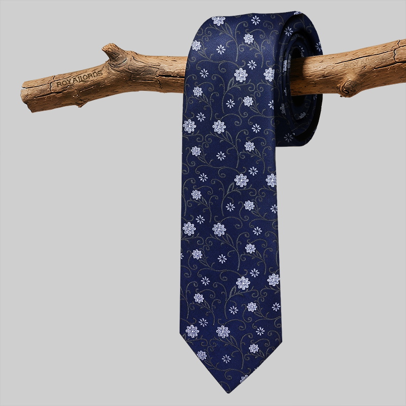 RONGZHI意大利桑蚕丝时尚花纹深蓝色真丝西装领带男正装商务8cm宽