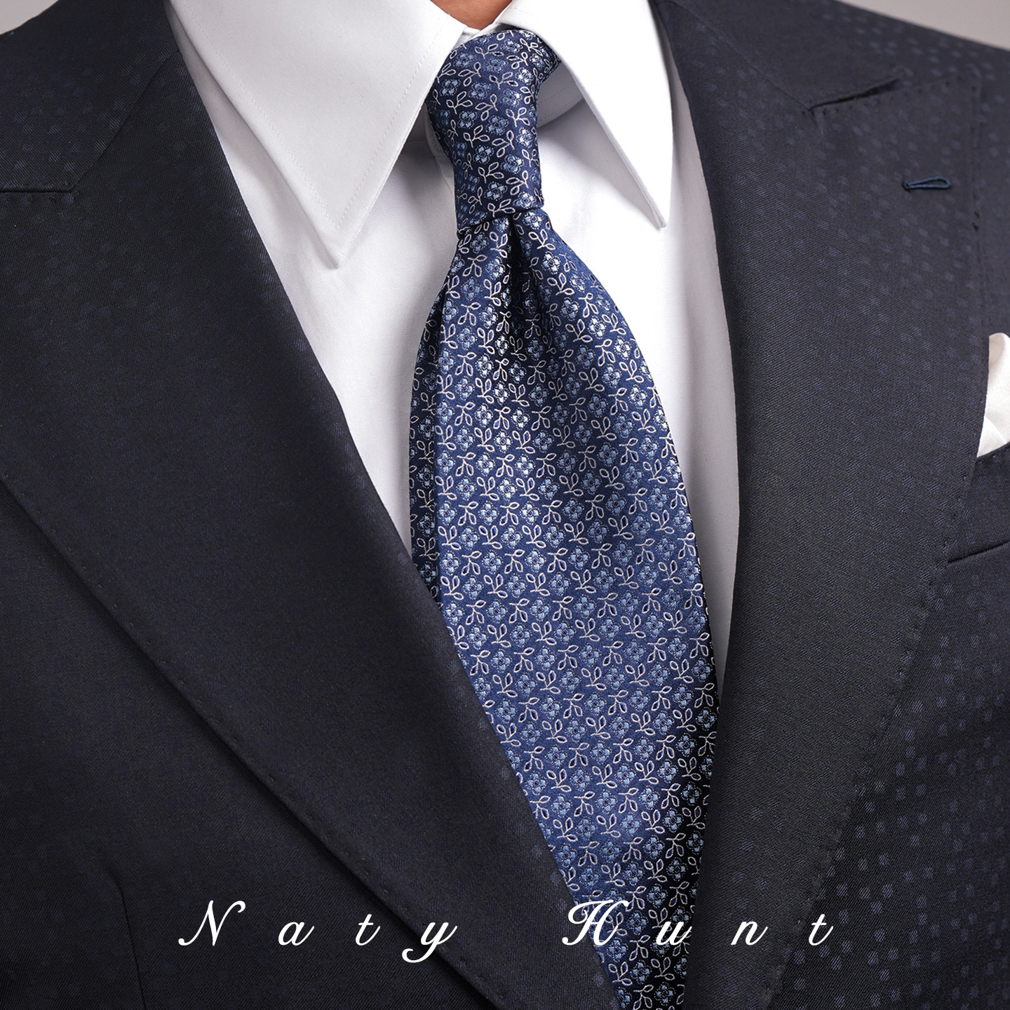 Natyhunt深蓝碎花羊毛内衬桑蚕丝提花领带男士轻奢商务领带礼盒