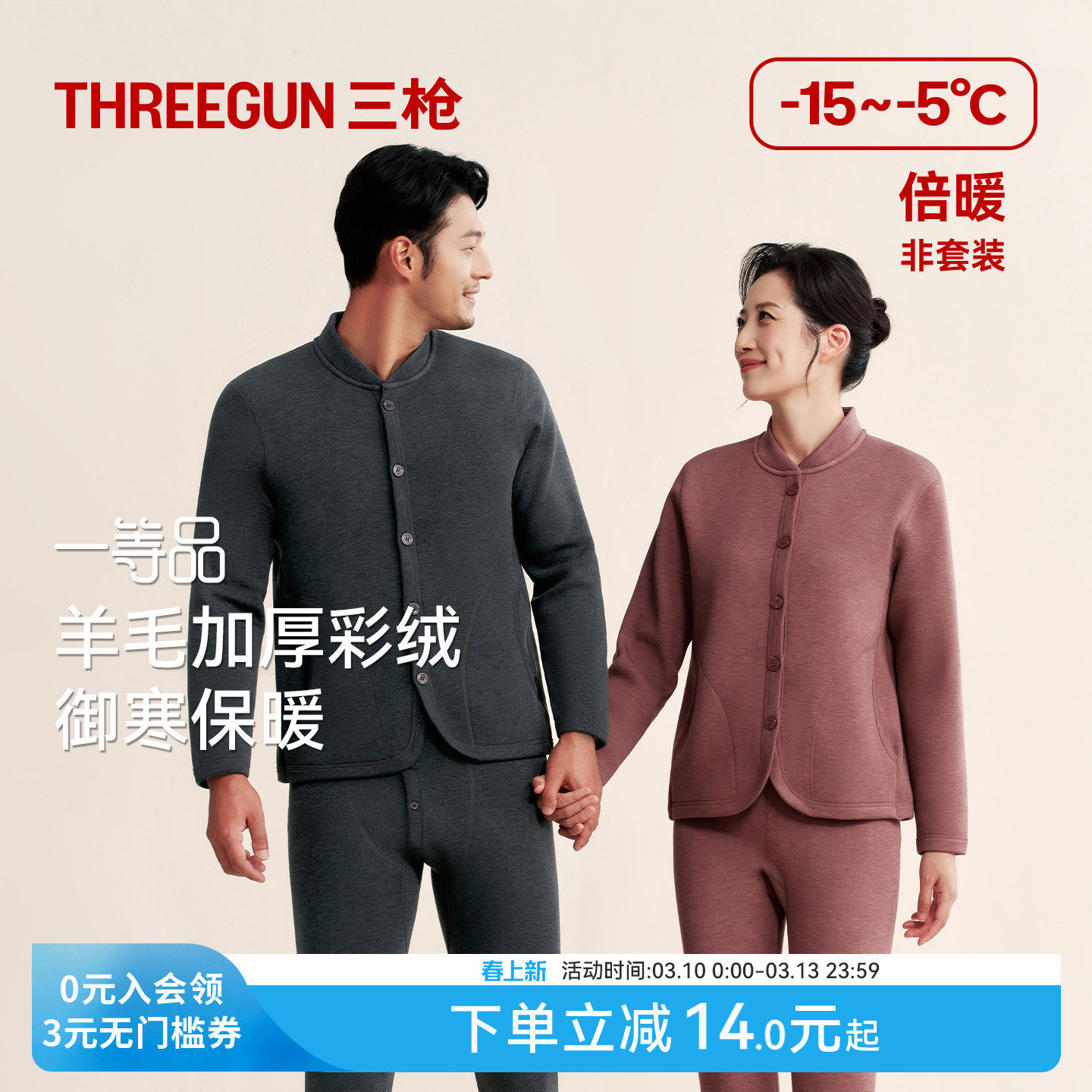 三枪羊毛开衫中老年加绒加厚秋冬可外穿高弹保暖裤送爸妈480g东北