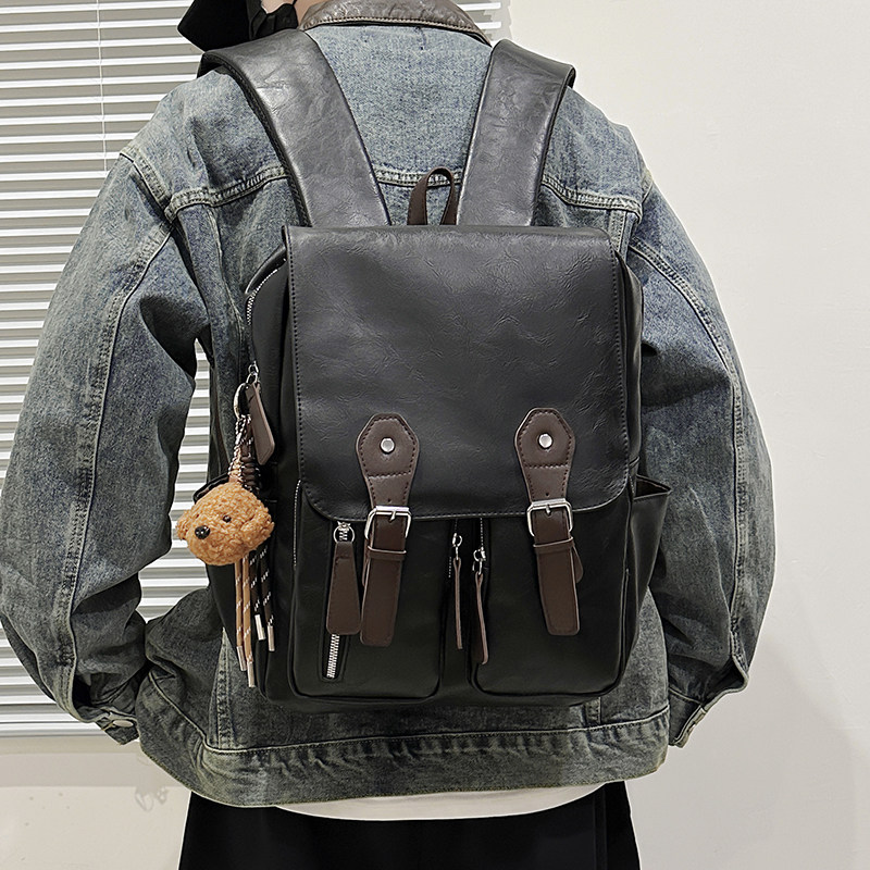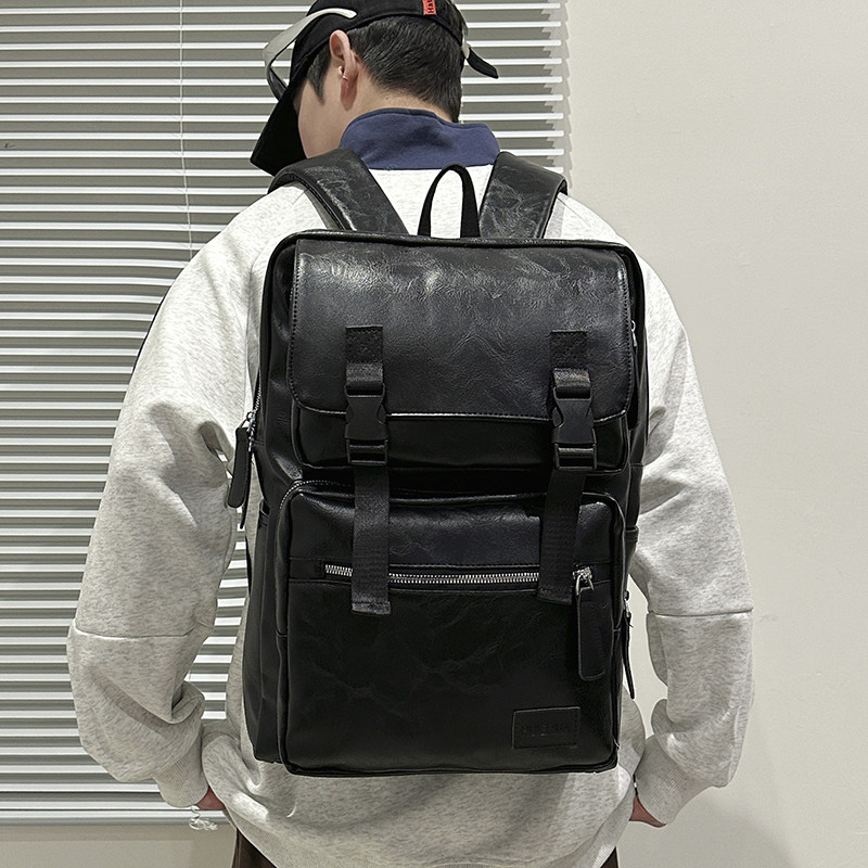 复古风书包男大学生质感pu皮上课学院风背包大容量电脑双肩包女潮