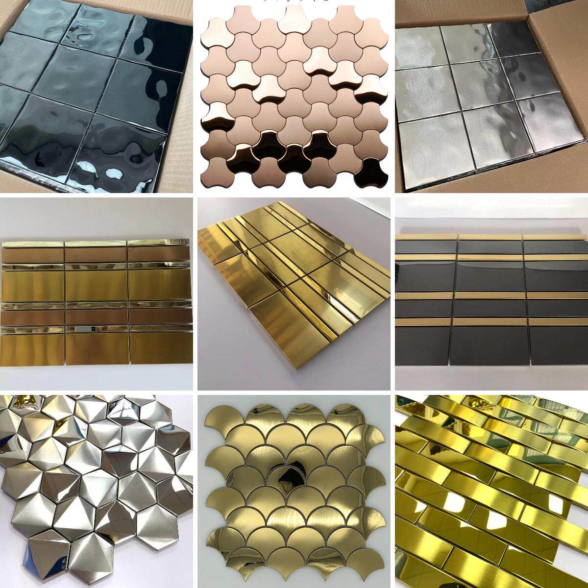 镜面金银色不锈钢工程酒店KTV洗浴会所金属装饰马赛克背景墙瓷砖