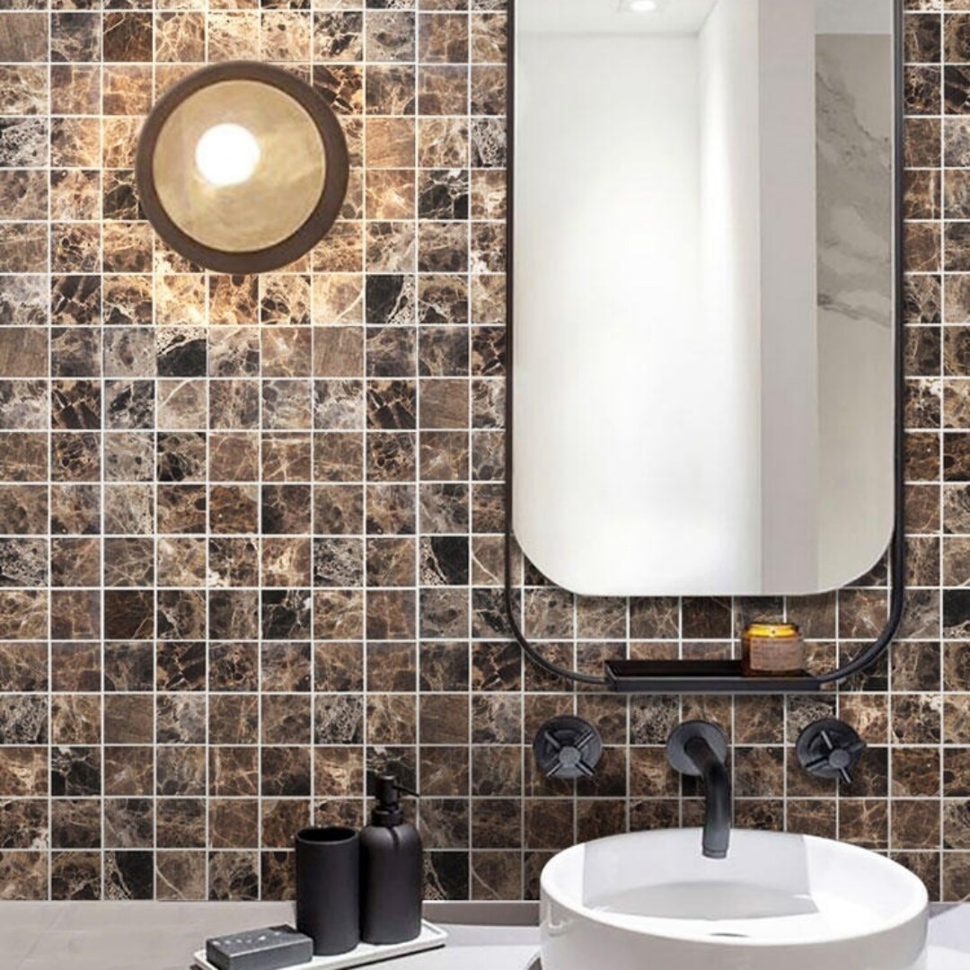 石材马赛克背景墙深啡网大理石咖啡色文化石厨房卫生间地面防滑砖