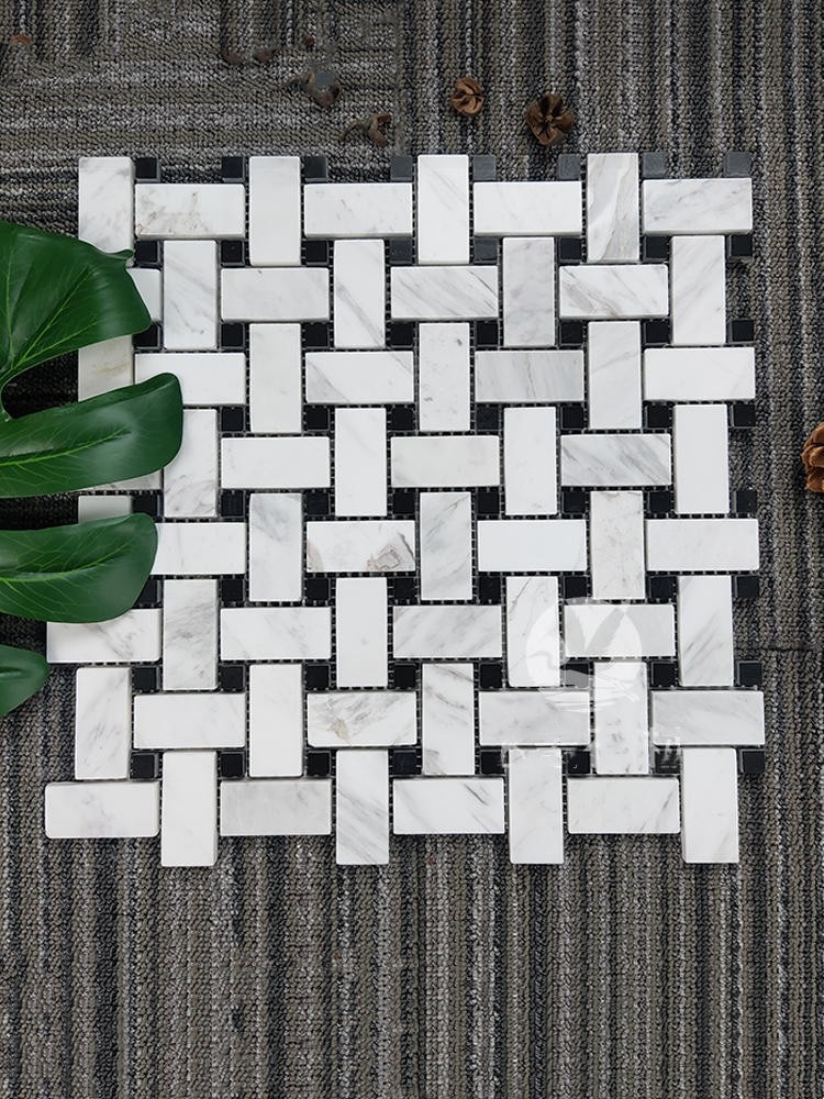 大理石马赛克背景墙砖阳台厨房浴室黑色白色编织纹地砖卫生间瓷砖